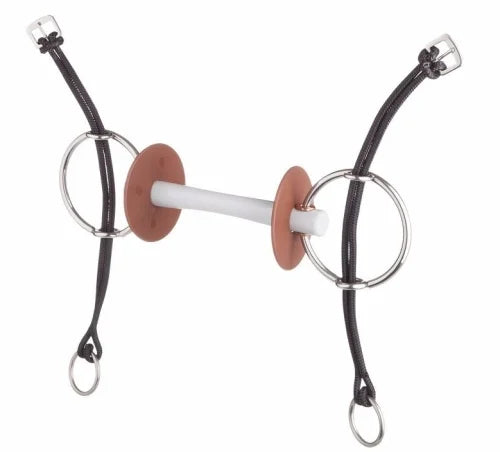 This anatomical correct bit rests equally on tongue and bars and offers more room and mobility for the tongue. With this bit the led rein will apply pressure evenly on tongue and bars. A lateral squeezing of tongue and bars will not happen. Also a pinching of the lips will be impossible by using bit . The Comfort Bar lies thanks to it`s shape very still in the horse´s mouth. Mouth bits are considered to be fairly mild. This bit made of our beris plastic compound will enable the rider to communicate with his horse in a more gentle and delicate way. The surface of our bits is very smooth and they slide easily in the mouth, even if the horse doesn´t salivate that much. The soft Comfort. Bit is ideal for young and sensitive horses.