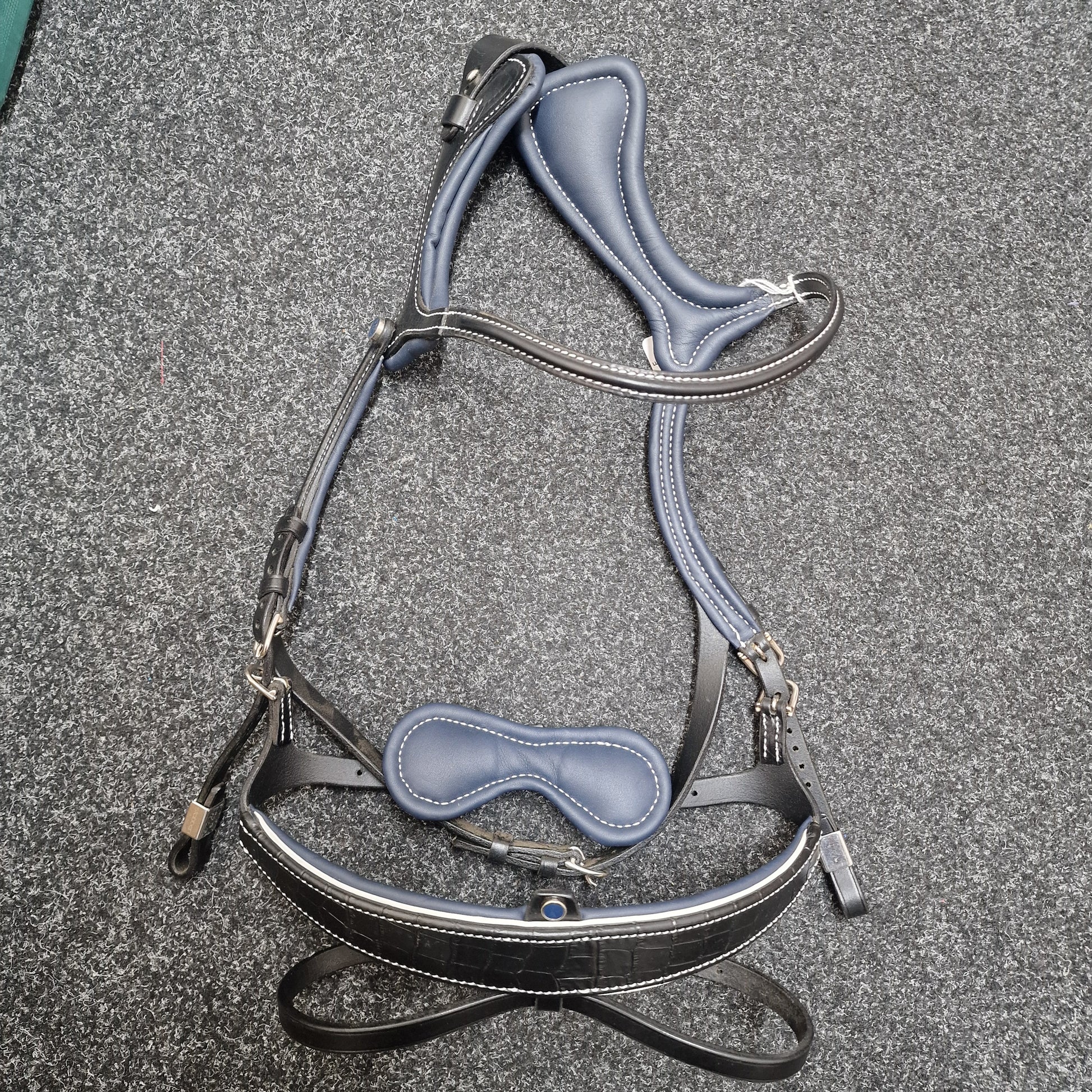 Stubben Freedom II bridle - customised black mock croc white and navy FULL size